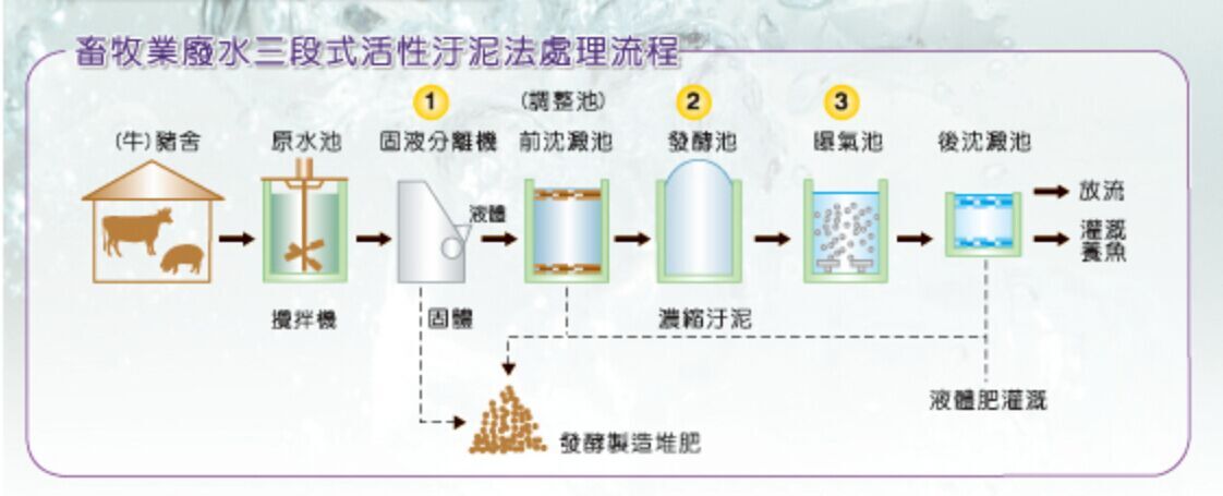 - 畜牧業廢水三段式活性汙泥法處理流程